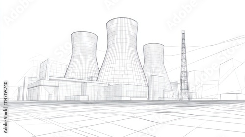 cooling tower, power plant, energy, industry, chimney, factory, industrial, electricity, technology, infrastructure, steel, structure, metal, construction, engineering, design, architecture, wireframe, three-dimensional, rendering, model, blueprint, vignetting, drawing, white, background, clean, simple, abstract, line, geometric, graphic, vector, illustration, concept, future, progress, development, growth, power, innovation, sustainable, clean energy, renewable energy, nuclear, fossil fuel, energy production