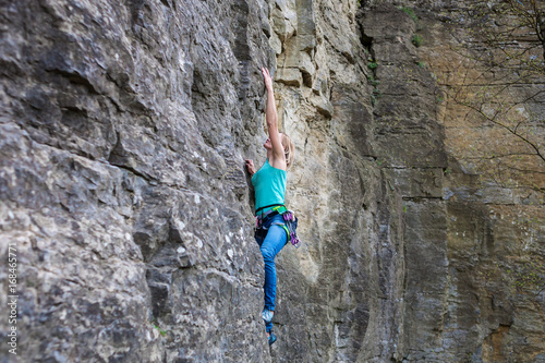 rock, strength, climbing, woman, climber, extreme, adventure, rope, sport, mountain, cliff, nature, risk, climb, stretching, activity, female, effort, stone, lifestyle, wall, danger, height, active, strong, overcome, summer, courage, view, high, young, adrenalin, challenge, safety, moving, exercise, travel, insurance, athlete, girl, success, training, mountaineering, hard, muscle, balance, energy, leisure, fitness
