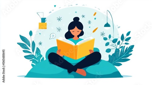 woman, book, plant, enjoy, captivate, cosy, vibrant, set, fill, whimsical, comfort, tea, nature, sharpened, creative, escape, passion, invite, vibe, artwork, lifestyle, detail, nook, fiction, ambience, story, quiet, decor, genre, hobby, hot drink, floral, character, charme, warmth, beauty, design, habit, culture, layout