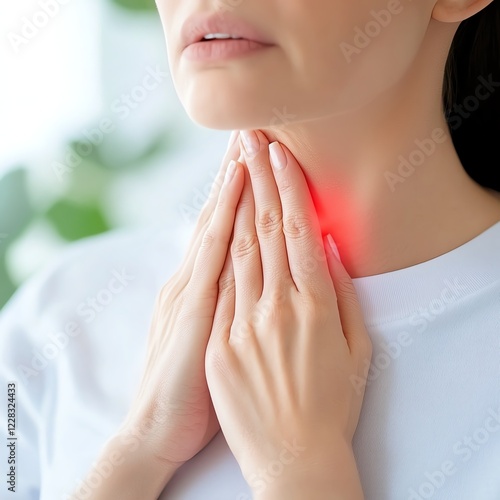 throat, discomfort, health care, woman, gently, touch, pointing, pain, soft, red, glow, medicine, heal, portrait, wellness, soothe, clinic, nature, beauty, thoughtfulness, mindfulness, awareness, facial, sharpened, background, visual, nurture, diagnose, serious, treatment, attention, reaction, comfort, tenderness, warmth, gentle, body, concern, presence, emphasis, gesture, empathy, clarity, language, medicals, expression, relief, support
