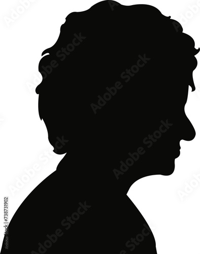 woman, head, profile, face, silhouette, vector, icon, outline, person, people, black, illustration, body part, curly hair, short hair, senior, female, lady, old