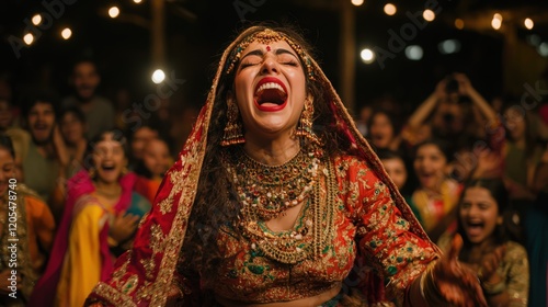 woman, red, gold, outfit, laughing, smiling, group, person, culture, tradition, indian, asian, celebration, young, ethnic, portrait, fashion, india, beauty, dress, clothing, bride, happy, costume, happiness, wedding, travel, adult, hindu, cheerful, face, female, lifestyle, festival, asia, saree, religious, man, elegance, dance, brunette, bridal, attractive, family, enjoyment, saree, ceremony, colourful