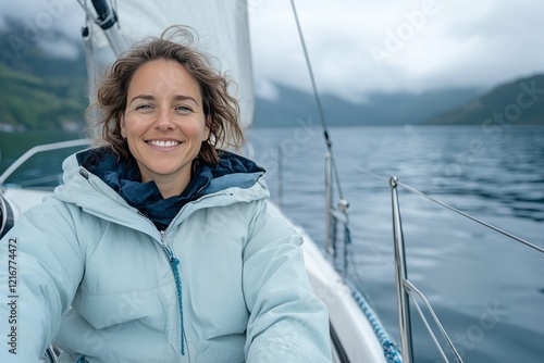 sailing, calm, water, overcast, weather, slimmer, smile, sailboat, relaxed, adventure, peaceful, cloudy, sky, tranquil, jacket, serene, gentle, nature, seafaring, solitude, nautical, sport, leisure, maritime, freedom, journey, boat, ocean, sail, sea, travel, vessel, sport, wind, yacht, cruise, marin, woman, person, ship, sailor, senior, fisherman, deck, lake, summer, fishing