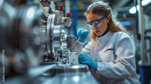 scientist, research, woman, science, person, female, biotechnology, equipment, scientific, test, technology, analysing, discovery, experiment, occupation, expertise, analysis, professional, liquid, education, young, concentration, adult, blue, men at work, examining, goggles, human, serious, reagent, factory, metal