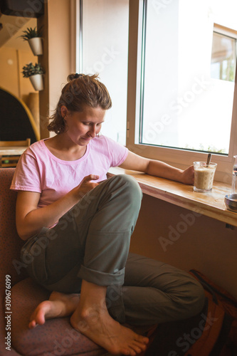 girl, window, woman, beautiful, tea, cup, caucasian, female, phone, lifestyle, hot drink, phone, cafes, smartphone, recreation, adult, people, beauty, attractive, cyberspace, mobile, happy, casual attire, drink, indoor, student, chatting, cafeteria, freelance, morning, device, cute, interior, 1, cosy, white, digital, resting, technology, contraption, smile, communication, person, face, smiling, reading, portrait, room, home, comfort