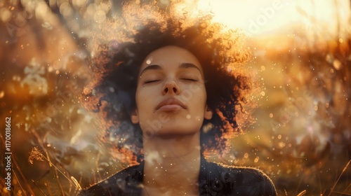 woman, meditation, sunset, nature, dreamy, glow, autumn, field, peaceful, harmony, relaxation, mindfulness, faith, spiritual, inspirational