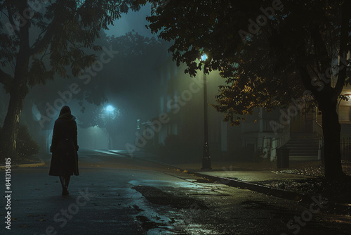 person, portrait, studio, beautiful, emotion, model, pretty, expression, posing, happiness, friendly, human, pose, shot, adorable, night, street, fog, silhouette, walking, urban, lonely, street light, tree, atmosphere, shadow, moody, quiet, empty, residential area, mist, eerie, autumn, night time, backview, dark, cinematic, mysterious