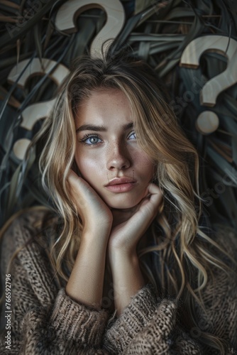 woman, question, mark, confused, uncertainty, doubt, puzzled, perplexed, researching, problem, mystery, thinking, contemplation, decision, dilemma