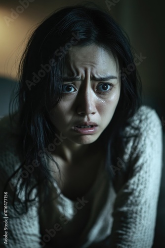 A woman with a sad facial expression, great for depicting emotional scenes or conveying melancholy.