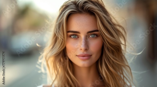 woman, blond, hair, posing, picture, street, woman, 1, person, adult, young, caucasian, beauty, looking, camera, portrait, lifestyle, blond, long, female, outdoors, smiling, closeup, brown, fashion, model, real, people, adult, sensuality, part, summer, confidence, beautiful, view, casual attire, clothing, copy, space, happiness, human, sharpened, foreground, cheerful, freshness, femininity, face, cute