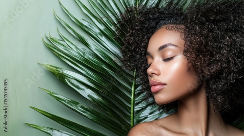 calm, beauty, salon, beautification, green, background, peaceful, cosmetic, curl, relaxation, therapy, natural, hair, relaxing, palm, leaf, soothing, rest, woman, serene, spa, treatment, routine, large, white, top, curly, wearing, lying