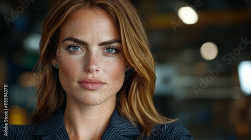 A woman with freckles on her face looking at the camera