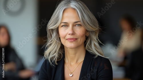 woman, grey hair, black shirt, senior, elderly, person, female, mature, ageing, stylish, fashion, attire, outfit, casual attire, portrait, trendy, senior citizen, clothing, apparel, style, elegant, casual clothes, fashionable, aged, retired, chic, retirement, grandparent