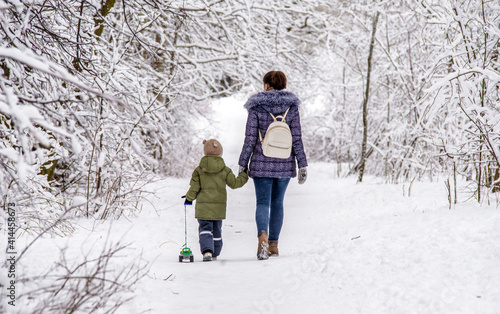 mother, son, winter, snow, woman, walking, adult, boy, baby, cold, park, people, walk, family, white, nature, active, tree, outdoors, ice, season, young, happy, children, fun, road, person