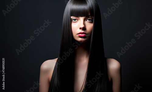beauty, woman, female, model, portrait, young, face, hair, fashion, styling, black, haircut, brunette, luxury, caucasian, coiffure, studio, make-up, honed, person, dark, glamour, lady, long, look, white, make-up, attractive, cute, healthy, health, eye, straight, brown, skin, salon, background, bob, cut, red, shiny, vogue, pretty, 1, closeup, care, lip, gloss, coiffure