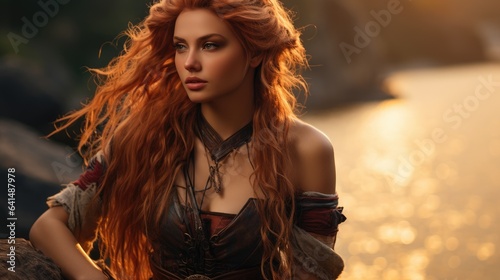 a woman with long red hair