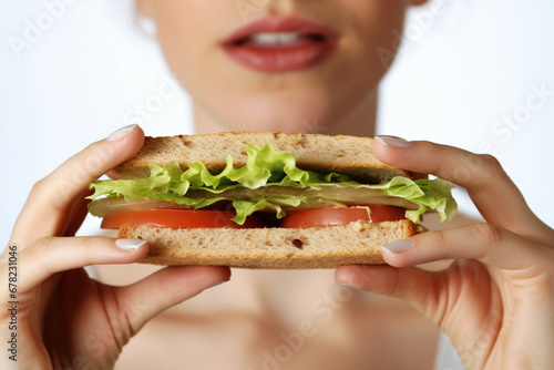 A Woman's Mouth Indulging in the Pleasures of a Delectable Sandwich Feast AI generated
