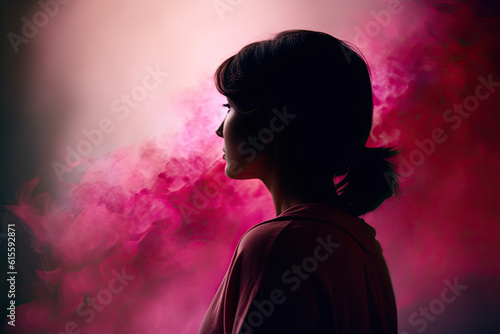 smoke, sky, portrait, woman, pink, profile, lighting, fashion, hair, person, face, attractive, apparatus, sexy, model, pretty, adult, lady, black, constructed, coiffure, cute, costume, equipment, style, smile, posing, people, make-up, sensual, happy, brunette, lip, clothing, stylish, hat, dress, elegant, woman, joy, generative, ai
