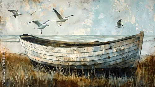 wooden, boat, seagull, ship, river, blue, white, painting, watercolor, hand-painted, illustration, poster, background, oil painting, artistic, art, embroidery, paint, abstract, decorative, ink, landscape, graffiti, colourful, generative, sea, seagull, bird, ocean, water, animal, nature, bird, beach, fly, sky, wildlife, flying, feather, wing, wood, old, summer, lake, boat, travel, island, cloud
