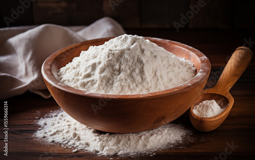 flour, bowl, wood, spoon, white, table, cooking, baking, ingredient, kitchen, rustic, food, powder, grain, wooden, surface, closeup, meal, preparation, still, life, organic, natural, simple, background, nourishment, wheat, empty, heap, pile, textile, linen, dark, shadow, indoor, studio, culinary, staple, diet, raw
