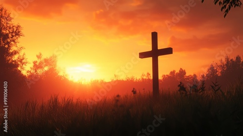 cross, sunset, silhouette, field, grass, sky, orange, red, yellow, nature, faith, religion, spiritual, hope, dramatic, warm, glow, landscape, christianity, belief, inspiration, sunrise, heaven, prayer, worship, abstract photography, serenity, calmness, peace, solitude, meditation