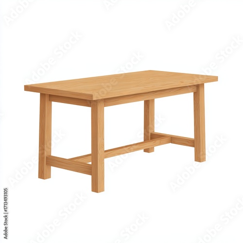 a wooden dining table with two symmetrical legs, a simple and elegant design, a rectangular shape, and a natural wood color, isolated on a white background, in an ultra-realistic photograph