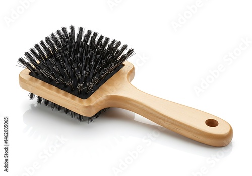 brush, hair, wooden, bristle, black, grooming, beauty, tool, handle, square, object, accessory, care, personal, hygiene, style, isolated, white, background, closeup, domestic, nobody, single, studio, clean, shiny, hairbrush, equipment, appliance