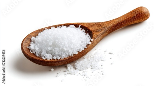 a wooden spoon containing a substantial amount of salt in a close up view