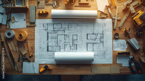 blueprint, design, tool, workspace, wood, paper, plan, architecture, project, layout, measurement, drafting, creativity, construction, equipment, organisation, material, craftsmanship, precision, innovation, planning, geometry, structure, analysis, renovation, workshop, sketch, model, surface, safety, collaboration, engineering, technique, vision, detail, functionality, aesthetic, artistry, development, strategy, inspiration, concept, evaluation, assembly