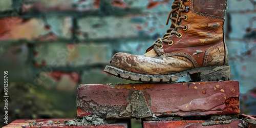 worn-out, work, boot, sit, stack, brick, mortar, building, block, prosperity, durability, labor, foundation, strength, construction, effort, dedication, resilience, craftsmanship, progress, commitment, hard work, heritage