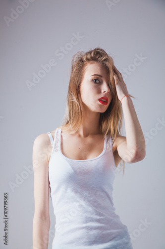 smile, young, model, white, adult, 1, female, portrait, healthy, girl, face, person, beauty, beautiful, background, top, tank, hair, underclothing, skincare, isolated, natural, people, lady, youth, standing, body, woman, make-up, skin, fresh, health, head, up, close, blond, long, closeup, facial, panty, clean, cosmetic, closeup, care, hygiene, eye, brunette, pretty, attractive, studio