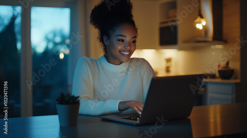 african american, businesswoman, excitement, idea, kitchen table, laptop, bright, welcoming, environment, successful, confident, motivated, professional, multitask, technology, communication, collaboration, diversity, innovation, creativity, modern, digital, entrepreneur, leadership, inspiration, teamwork, empowerment, progress, growth, networking, brainstorming, inclusive, dynamic, ambitious, radiant