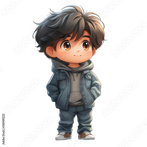 boy, hoodie, dark hair, young boy, casual attire, shy, curious, innocent, youth, digital artwork, cute, charming, casual clothes, relaxed, friendly, adorable, digital illustration, cartoon, vivid colors, expressive, modern, trendy, youthful, standing