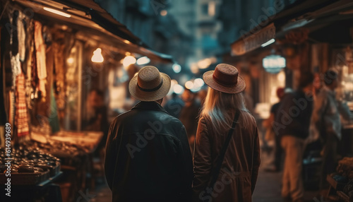 A young couple walking together at night in the city generated by AI
