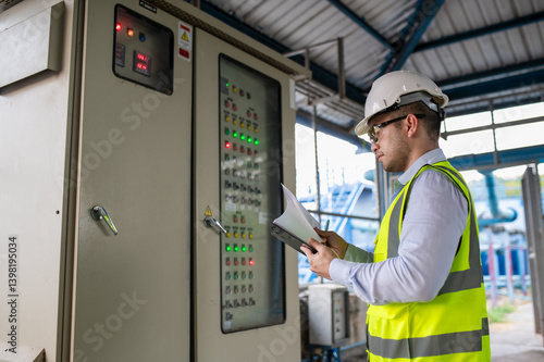 adults only, analysing, buttons, cabinet, circuit, clipboard, control, control panel, electrician, electricity, engineer, equipment, examining, expertise, factory, hard hat, headwear, helmet, horizontal, improvement, indoor, industry, innovation, inspector, installing, machinery, maintenance, man, manufacturing, one person, panel, photo, powerline, power supply, professional, repairing, repairman, safety, service, supply, switchboard, system, technical, technician, uniform