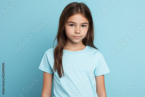 young, girl, wearing, blue, shirt, looking, camera, serious, person, face, female, portrait, cute, childhood, expression, little, beauty, model, studio, background, pretty, caucasian, small, children, isolated, fashion, white, children, emotion, hair, attractive, lifestyle, closeup, lovely, adorable, 1, woman, 1, problem, daughter, style, brunette, posing, confident, charming, schoolgirl, sweet, casual attire, facial