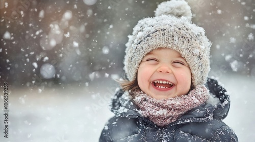 girl, children, snow, winter, happy, laughing, smile, joyful, cute, young, face, eye, teeth, mouth, hat, knitted, foulard, jacket, cold, snowflake, falling, outside, nature, cheerful, innocent, warm, playful, wintery, frosty, fun, weather, season, december, jan, february, holiday, christmas, new year