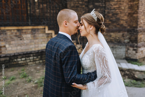 wedding, bride, portrait, groom, beautiful, lifestyle, close, coiffure, building, ancient, church, wall, brown, old, honeymooners, chequered, diadem, couple, smiling, stylish, tenderness, suit, dress, love, woman, outdoors, white, female, marriage, man, girl, happy, young, people, hugging, happiness, male, married, human relationships, summer, romantic, together, background, 2, bridal, smile, husband, park, bohemian