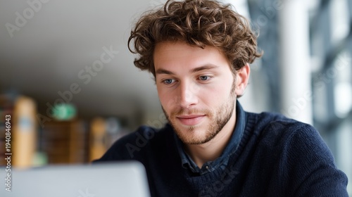 student, laptop, studying, university, library, learning, education, sharpened, young, male, man, academic, research, cognition, concentration, college, work, browsing, technology, screen, thinking, intellectual, campus, sweater, casual attire, engagement, motivated, dedicated, assignment, exam, preparation, writing, online, course, digital, youth, generation, reading, scholar, training
