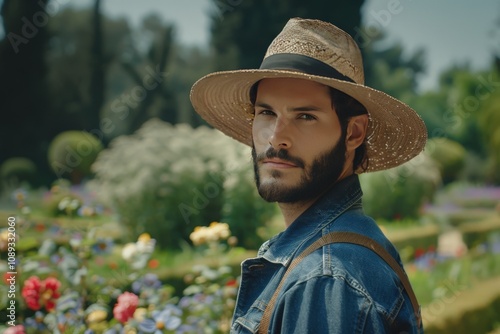 gardener, nature, flower, portrait, summer, serenity, calmness, exploration, peaceful, trendy, vibrant, hobby, stylish, heritage, gardening, seasonal, farming, photogenic, growth, artistic, hat, elegant, sunlight, plant, rustic, male, botanical, scenic, rural, charming, denim, sunlit, beard, floral, lifestyle, outdoors, creative, colourful, beauty, casual attire, green, adventure, environment, bloom, fresh, landscape, agriculture