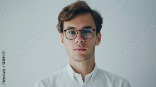 A young man with glasses stares intently into the camera.