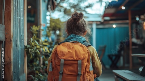 young, student, backpack, resting, shelter, highlighting, reality, woman, fashion, people, beauty, dress, clothes, person, christmas, style, clothing, hat