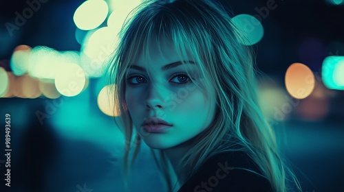woman, night, city, light, contemplation, urban, portrait, blond, glowing, youth, beauty, street, vibrant, expression, face, modern, aesthetic, bokeh, background, fashion, gaze, atmosphere, mood, serene, calm, nightlife, emotion, silhouette, surrounding, lifestyle, candid, contrast, young, adult, stylish, character, intrigue, peaceful, elegant, setting, female, cool, tone, winter, dusk, aglow, style, life, sharpened
