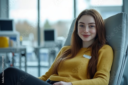 health care, smile, woman, modern, comfort, clinical, environment, happy, friendly, portrait, care, person, sitting, indoor, vibrant, style, satisfaction, wellness, youthful, positive, life, treatment, support, professionalism, atmosphere, smiling, relaxation, service, caring, nurse, staff, therapy, appearance, elegance, mood, reassurance, engagement, identity, emotion, sharpened, genuine, approach, inviting