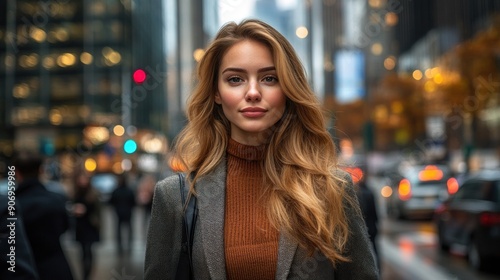 woman, city, street, tied-up, autumn, colours, urban, traffic, building, pedestrian, fashion, portrait, confidence, lifestyle, evening, light, brown, sweater, long hair, autumn leaf, background, shopping, activity, crowd, character, warmth, scenery, architecture, modern, style, expression, beauty, day, serene, park, skyline, shiny, pavement, street light, city landscape, motion, seasonal, trendy, fashionable, ambience