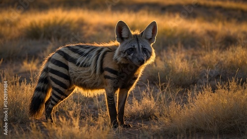 Aardwolf in a Grassy Savannah at Dusk