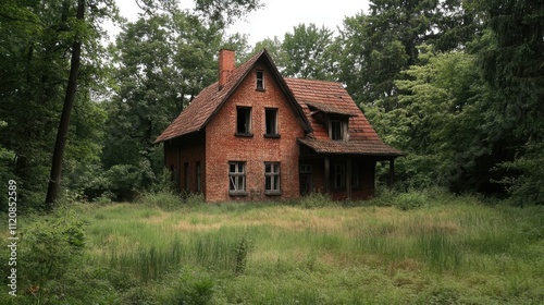 Abandoned house in overgrown forest near upland moor Southern Bavaria showcasing rustic architecture and natural reclamation
