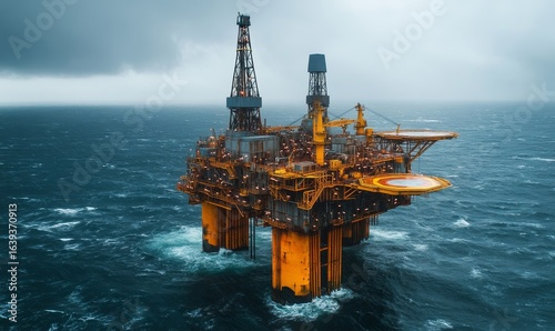 abandoned oil rig set against a stormy sea, capturing the harsh and unforgiving environment of the offshore energy industry, Generative AI