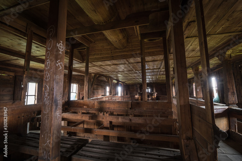 dark, abandoned, architecture, brick, brown, building, catholic, church, deserted, exploration, indoor, inside, interior, old, region, religion, saint, travel, urban, village, wood, wooden