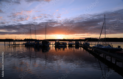 evening, evening sky, evening scene, tree, boat, brandenburg, german, europa, port, countryside, marina, pier, see, sunset